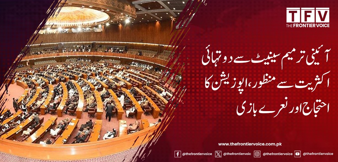 آئینی ترمیم سینیٹ سے دو تہائی اکثریت سے منظور، اپوزیشن کا احتجاج اور نعرے بازی