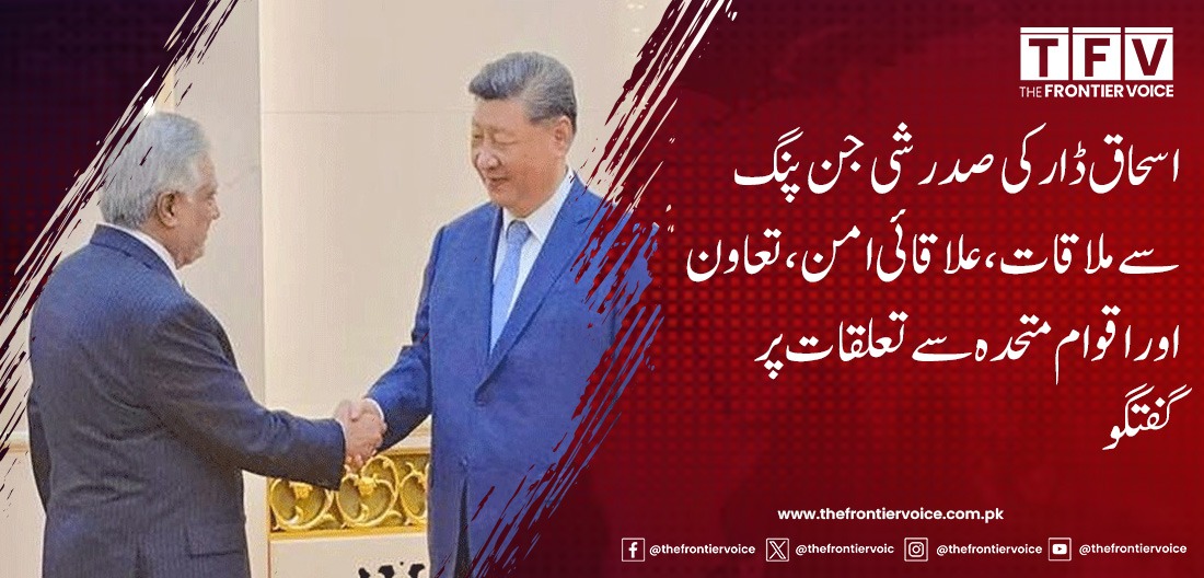 نائب وزیرِاعظم اسحاق ڈار نے بیجنگ میں شنگھائی تعاون تنظیم کے اجلاس کے موقع پر چین کے صدر شی جن پنگ سے ملاقات کی، جس میں پاکستان کے علاقائی امن، روابط اور کثیرالجہتی تعاون کے عزم کا اعادہ کیا گیا۔