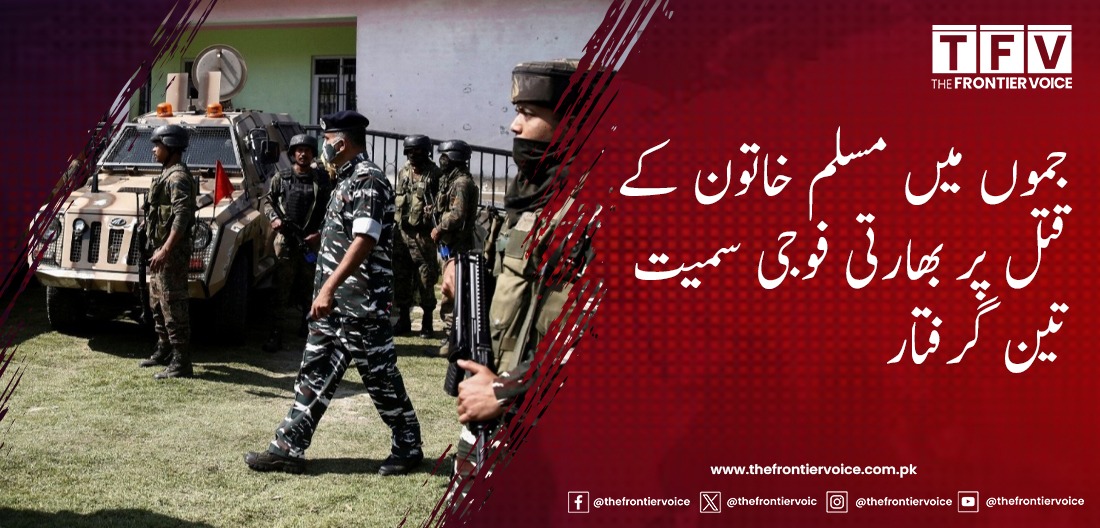جموں کے سائی نِک کالونی میں ایک مسلم خاتون کے قتل اور دو بہنوں کو زخمی کرنے کے واقعے میں بھارتی فوجی سمیت تین افراد کو گرفتار کر لیا گیا ہے۔