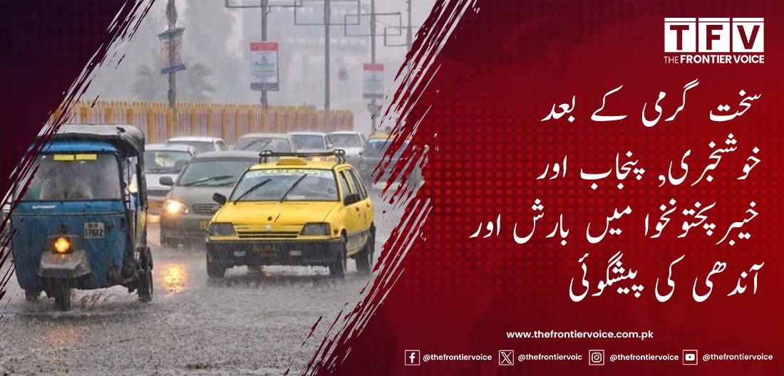 محکمہ موسمیات نے سخت گرمی کے بعد پنجاب اور خیبرپختونخوا کے مختلف علاقوں میں گرج چمک کے ساتھ بارش اور تیز آندھی کی پیشگوئی کر دی ہے۔