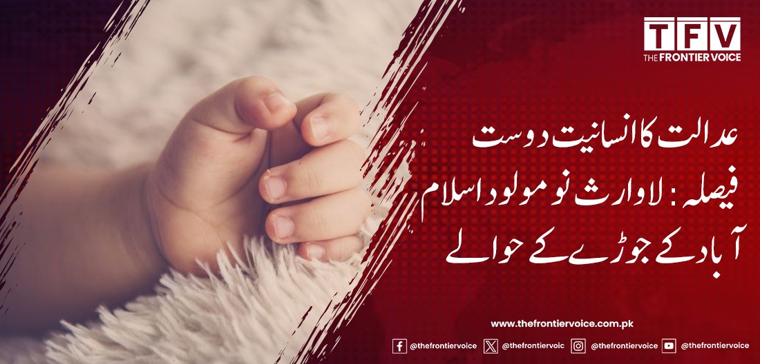 ڈی آئی خان کی عدالت نے ایک غیر معمولی اور خوش آئند فیصلے میں لاوارث نومولود بچے کو اسلام آباد کے تعلیم یافتہ جوڑے کے سپرد کردیا۔