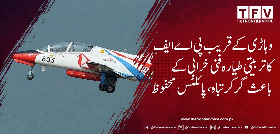 پاکستان ایئر فورس کا ایک تربیتی طیارہ منگل کے روز وہاڑی کے علاقے رتہ ٹبہ کے قریب فنی خرابی کے باعث گر کر تباہ ہو گیا۔ طیارہ معمول کی تربیتی پرواز پر تھا جب اسے ہوا میں تکنیکی مسئلہ پیش آیا۔