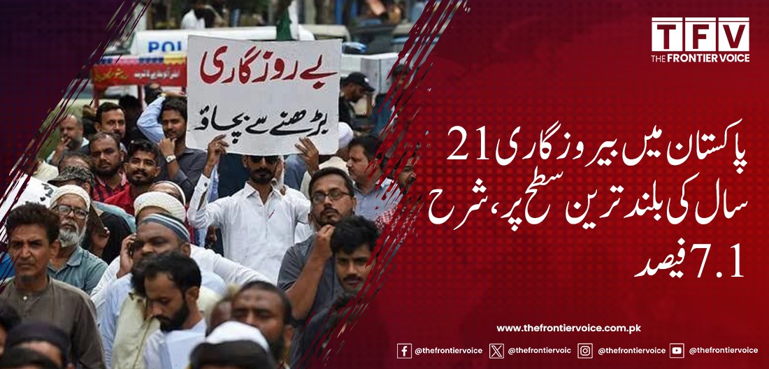 وزارتِ منصوبہ بندی و ترقی کے جاری کردہ لیبر فورس سروے کے مطابق پاکستان میں بیروزگاری کی شرح 21 سال کی بلند ترین سطح پر پہنچ گئی ہے اور مالی سال 2024–25 کے اختتام تک یہ شرح 7.1 فیصد ہو چکی ہے۔