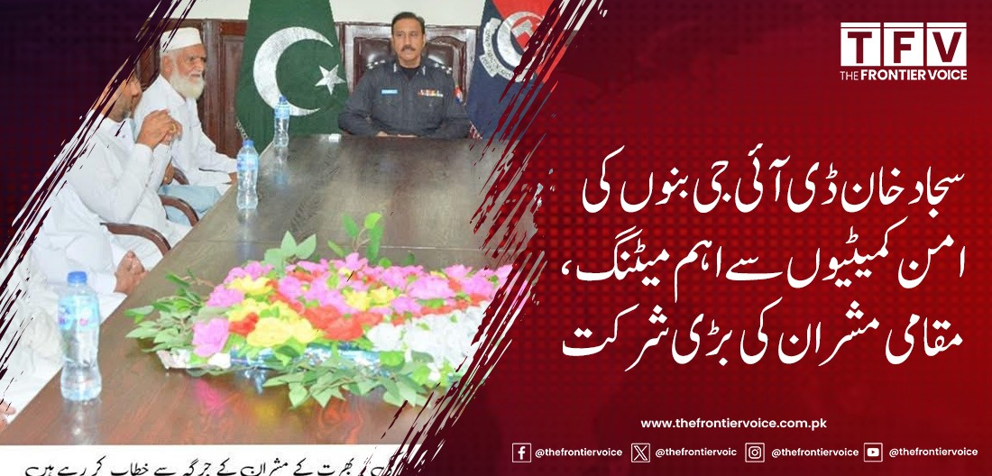 ریجنل پولیس آفیسر بنوں، ڈی آئی جی سجاد خان کی زیر صدارت ڈی آئی جی آفس میں ککی قومی اتحاد، خوجڑی قوم اور بھرت قوم کی امن کمیٹیوں کے ساتھ ایک خصوصی اجلاس منعقد ہوا۔ اجلاس میں بڑی تعداد میں علاقائی مشران نے شرکت کی۔